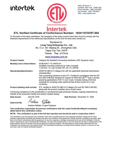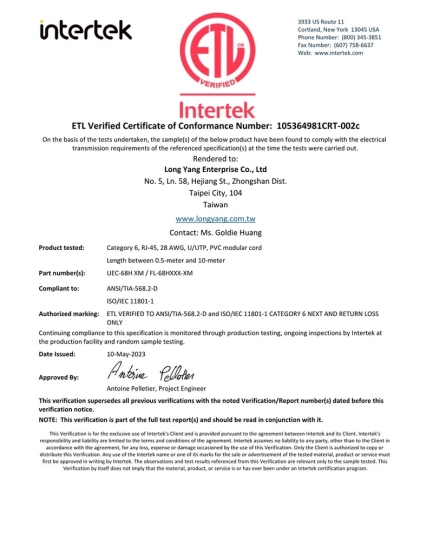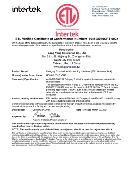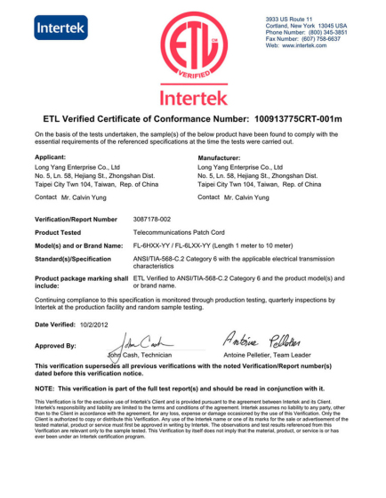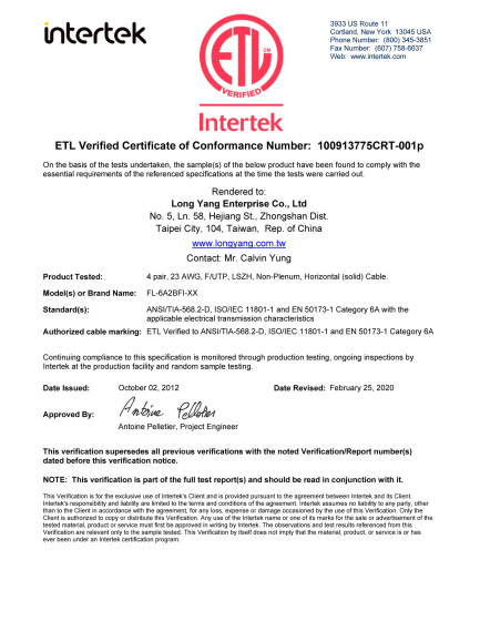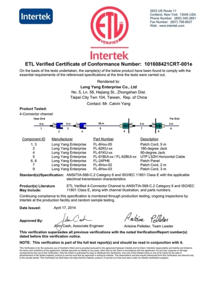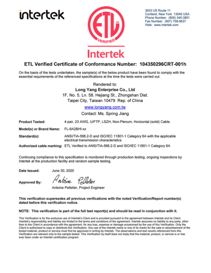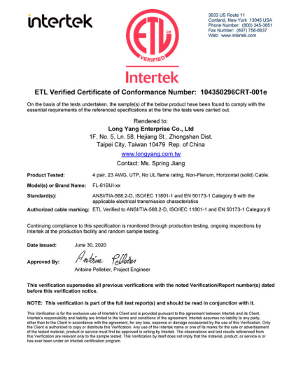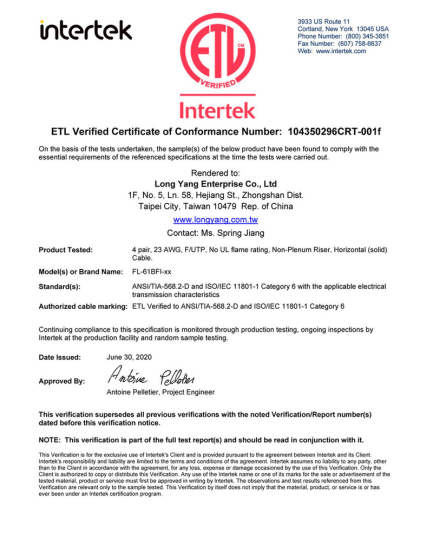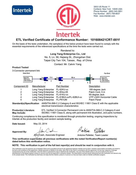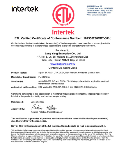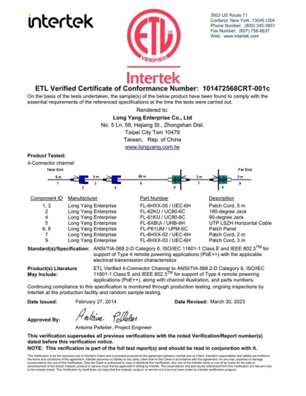 【ETL】FL-62CUI六类非屏蔽低烟无卤线缆检测报告