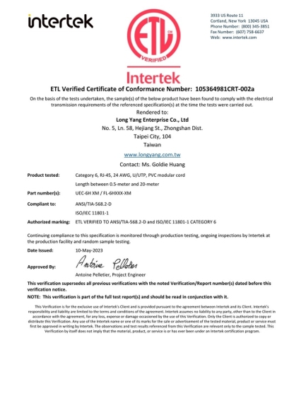 【ETL】FL-61CUI六类非屏蔽线缆检测报告