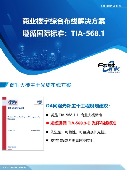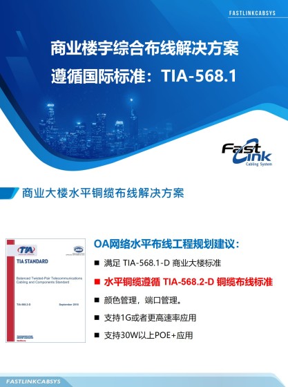 📶之前,我们在综合布线国际标准概述一文中提过,商业楼宇的综合布线解决方案,需要遵循TIA-568.1国际标准。📶针对不同类型的传输介质,其对应的具体标准又有所不同。比如,针对具体的水平铜缆布线元器件,则需要遵循TIA-568.2-D的铜缆布线标准,其中包括线缆和接插件类型等级的分类,颜色的管理,端口的管理等具体细节,支持百兆、千兆甚至万兆的高速数据传输,还能支持15W、30W甚至90W的PoE应用。📶由于商业大楼的办公环境一般都比较好,没有太大的灰尘和水汽,空调设备等也能保持环境基本的恒温恒湿要求,通常也不